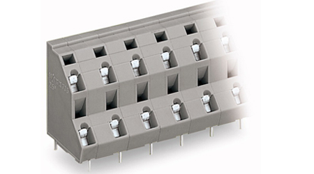 二层 PCB 接线端子条 2个焊针,呈半针距交错排列 6X2 极 针距 10 mm / 0.394 in