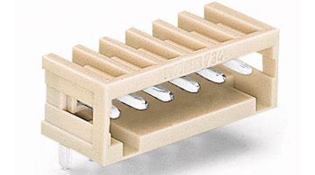 针型插座 直角型焊针,1 x 1 mm / 0.039 x 0.039 in 6极 针距 3.5 mm / 0.138 in 100% 防插错 两端封闭式 连接器插拔方向与PCB板平行
